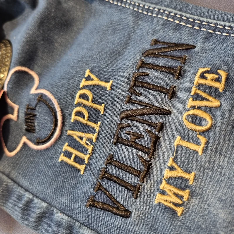 شلوار جین اسلش طرح میکی طرح های روی شلوار اکلیل دار و گلدوزی شده و کاملا تضمینی می باشد تنخوری شلوار خیلی خوشگل و راحت است .کمر شلوار کش و گتدار و قابل تنظیم می باشد .
