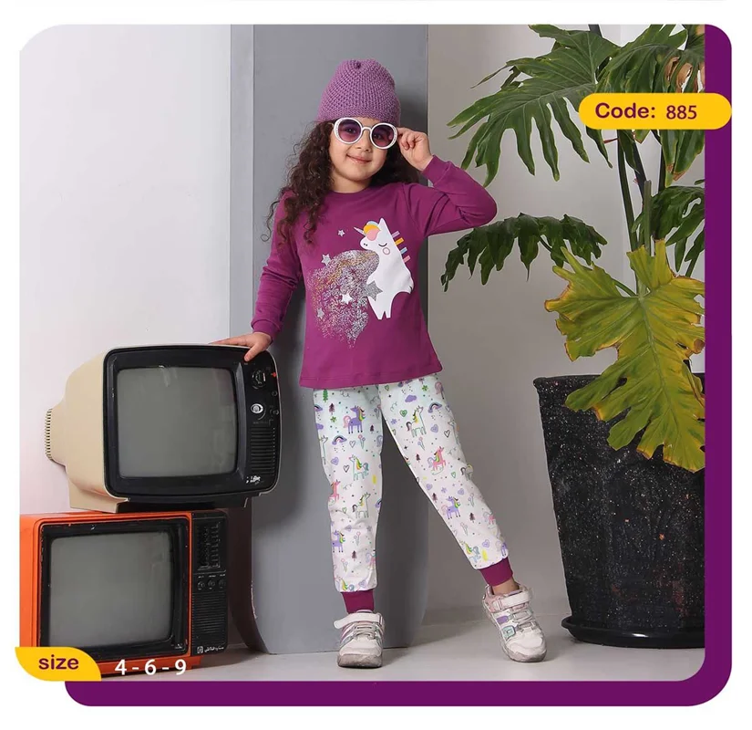 بلوز شلوار دخترانه جنس پارچه بلوز : دوروپنبه سوپر 40 جنس پارچه شلوار : دورس پنبه فول لاکرا در سه رنگ زیبا و با طرح محبوب بچه ها