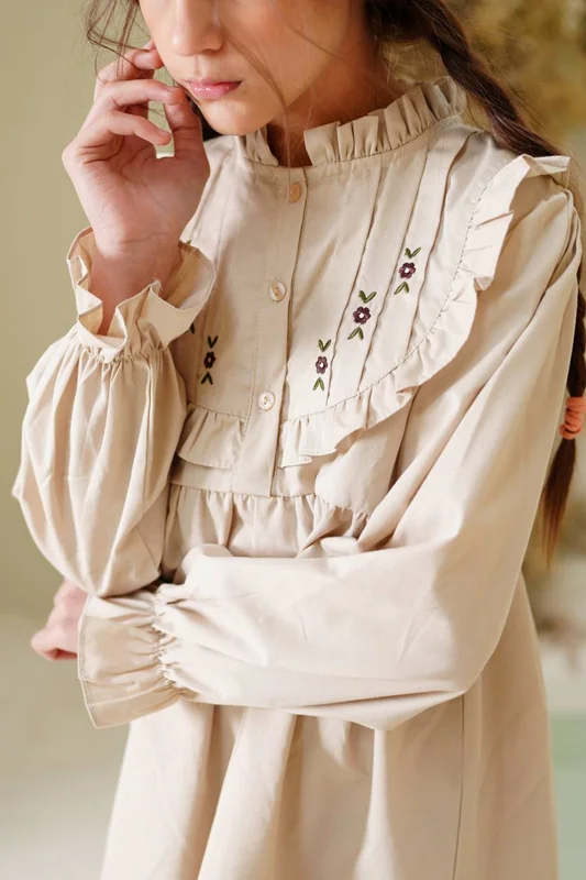 پیراهن دخترانه مدل کوک طرح ترک با پارچه پوپلین کج راه که بسیار نرم است و ایستایی خوبی دارد. گل ها گلدوزی شده و کیفیت کار بسیار بالا و تضمینی می باشد. دکمه های جلوی کار باز و بسته می شود.