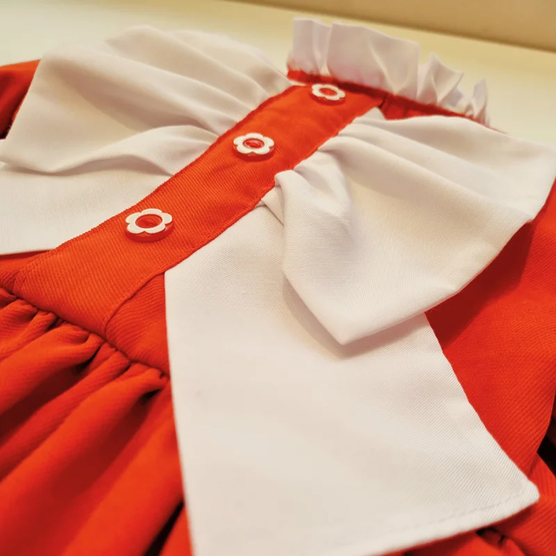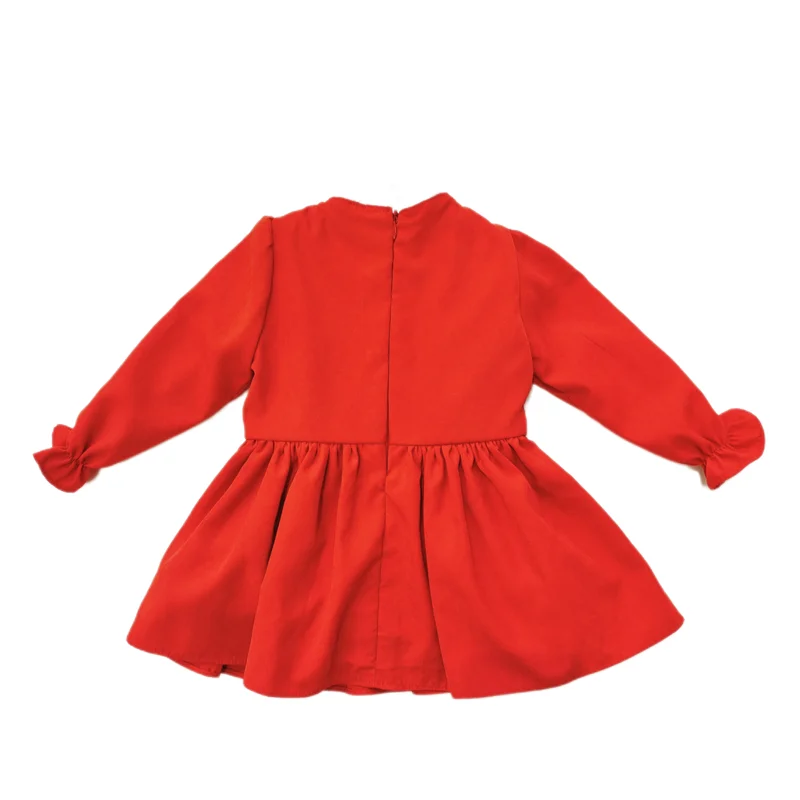 پیراهن دخترانه مزون دوز با طرح انحصاری کاملا آسترکشی شده با سایز بندی استاندارد پشت کار تا کمر زیپ خورده و سر آستین ها کش دارد